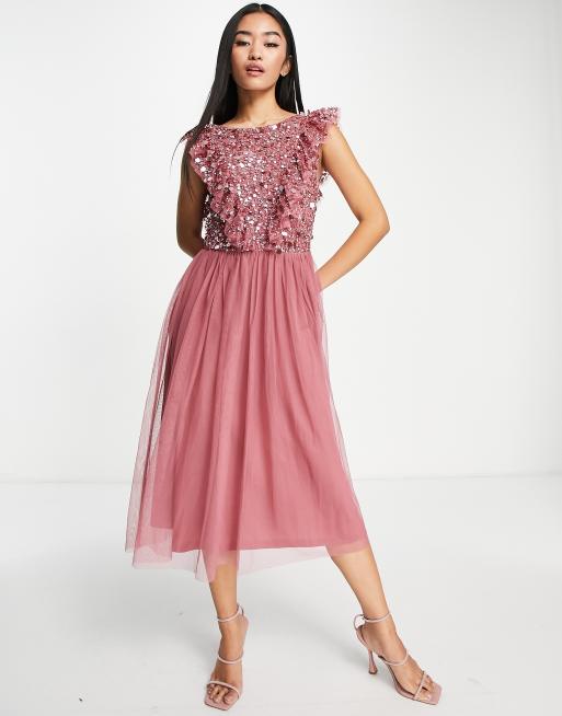 Maya Bridesmaid Embellished Open Back Midi Dress In Desert Rose Asos